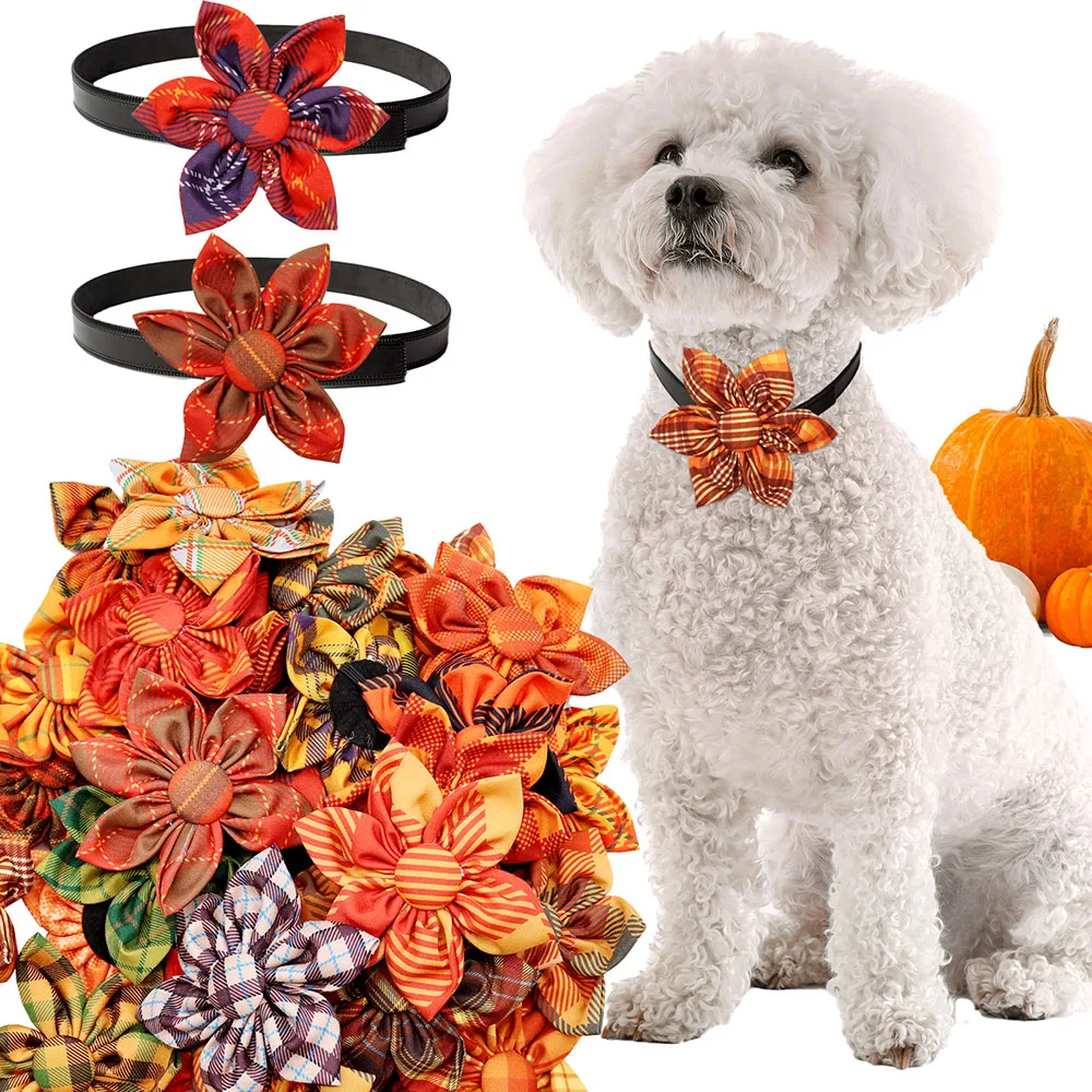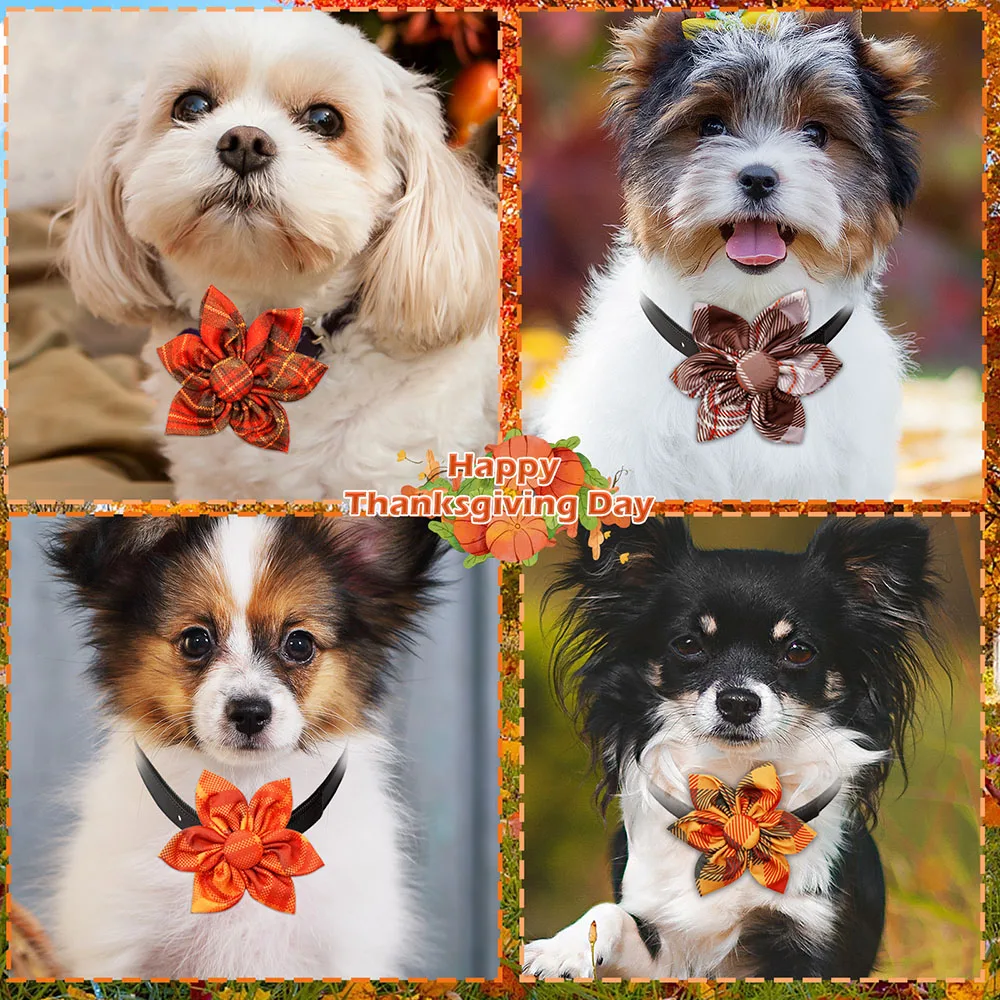 30pcs Small Dog Cat Bowtie For Collar Autumnal Dog Grooming Thanksgiving Pet Dog Bow Tie Collar Accessories For Fall