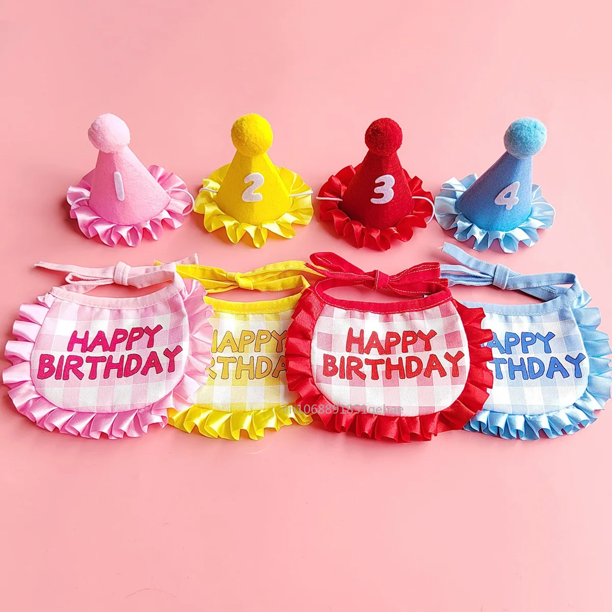 This birthday set with hat and scarf is designed for small and medium pets, adding a fun and adorable touch to the celebration.