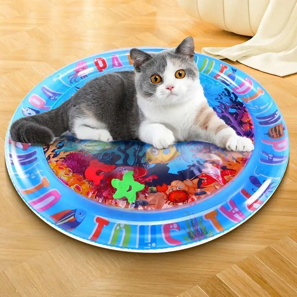 3.Ideal Comfort: Level up your cat's playtime with our sensory water play mat, designed to enrich relaxation and comfort of your pets with a refreshing and soothing sensation that makes playtime enjoyable like never before.