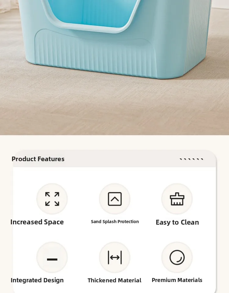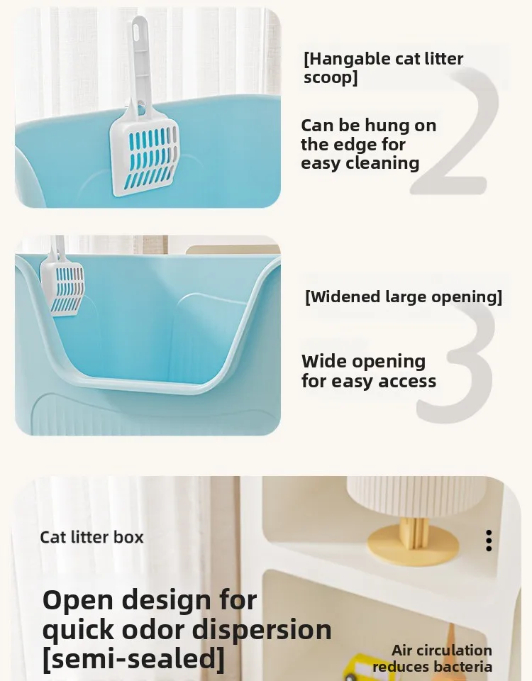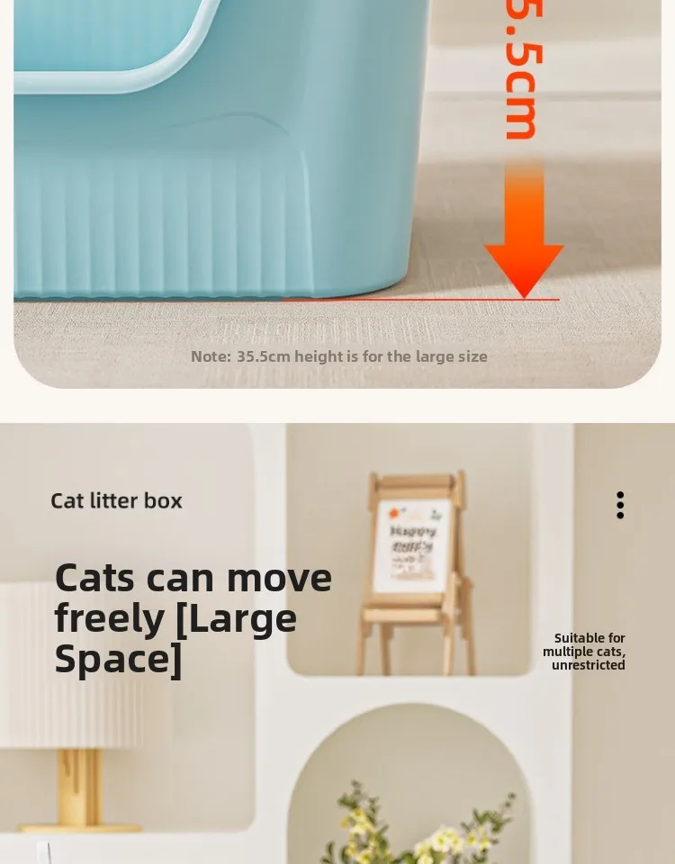 Spacious, semi-enclosed, and splash-proof, it’s the perfect choice for large breeds like Maine Coons, ensuring easy manual cleaning and daily comfort. 🐱✨