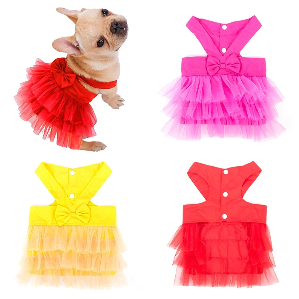 Pet Supplies Soft  Dog Lace Dress Breathable Comfortable Dog Princess Dress with Bowknot Pet Dress York